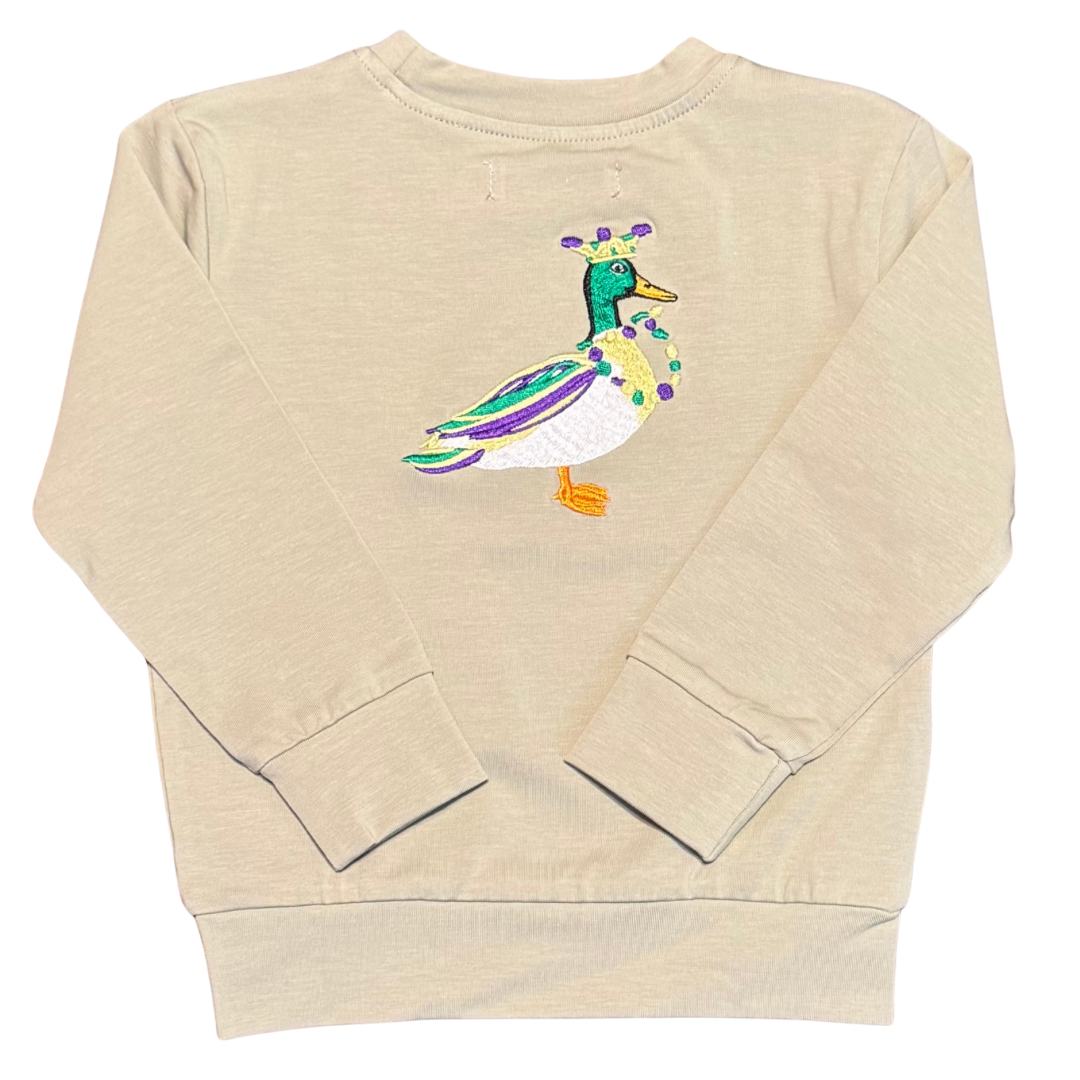 Get ready to party with our Mardi Gras Duck Embroidered Tee! This playful tee features a fun design of a duck dressed up for the festive celebration. With its eye-catching embroidery and comfortable fit, this tee is sure to be a hit at any Mardi Gras celebration. Laissez les bons temps rouler!